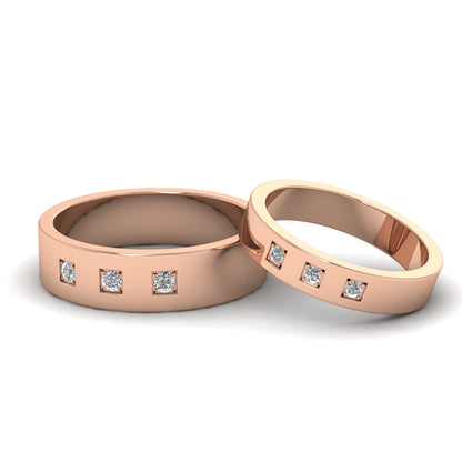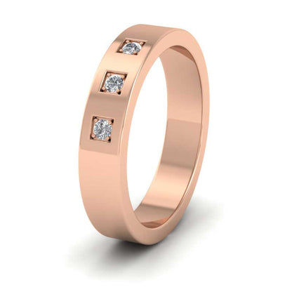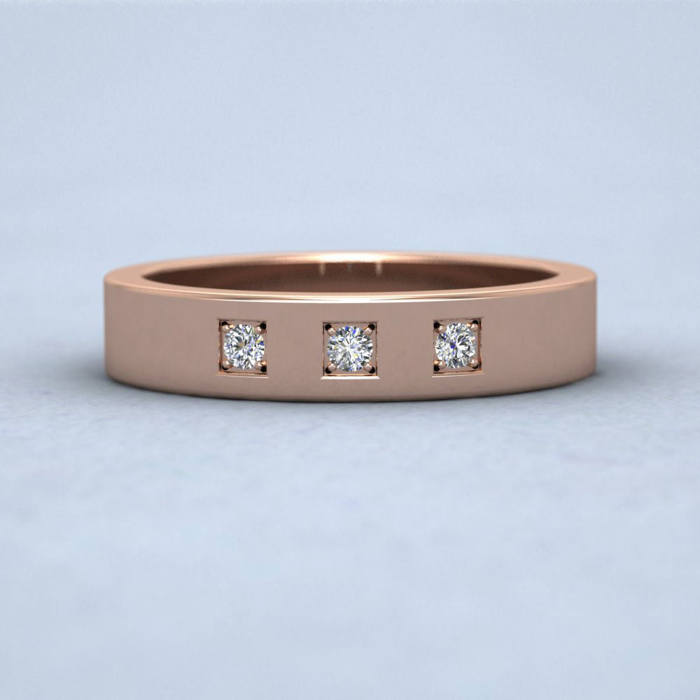 18ct Rose Gold Three Diamonds With Square Setting Flat Wedding Ring. 4mm Wide