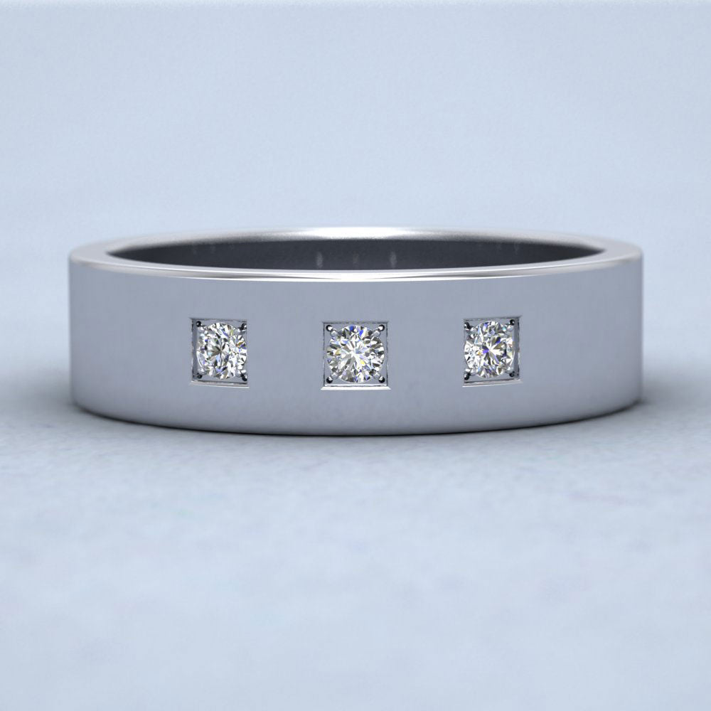Three Diamonds With Square Setting 18ct White Gold 6mm Wedding Ring