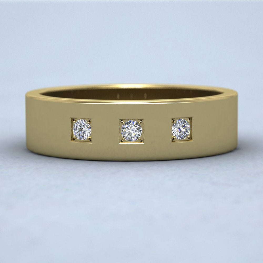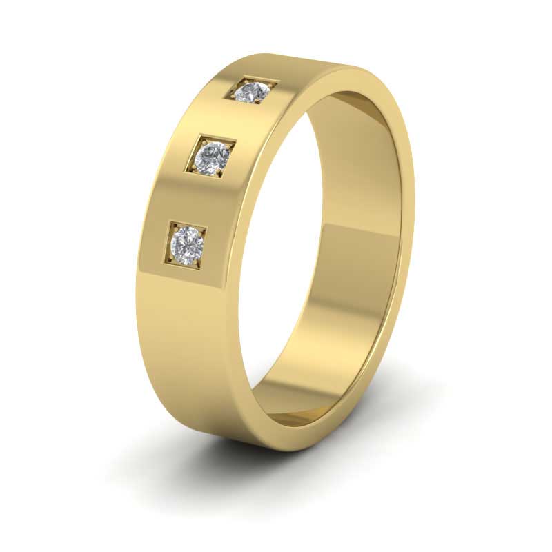 22ct Yellow Gold Three Diamonds With Square Setting Flat Wedding Ring. 6mm Wide