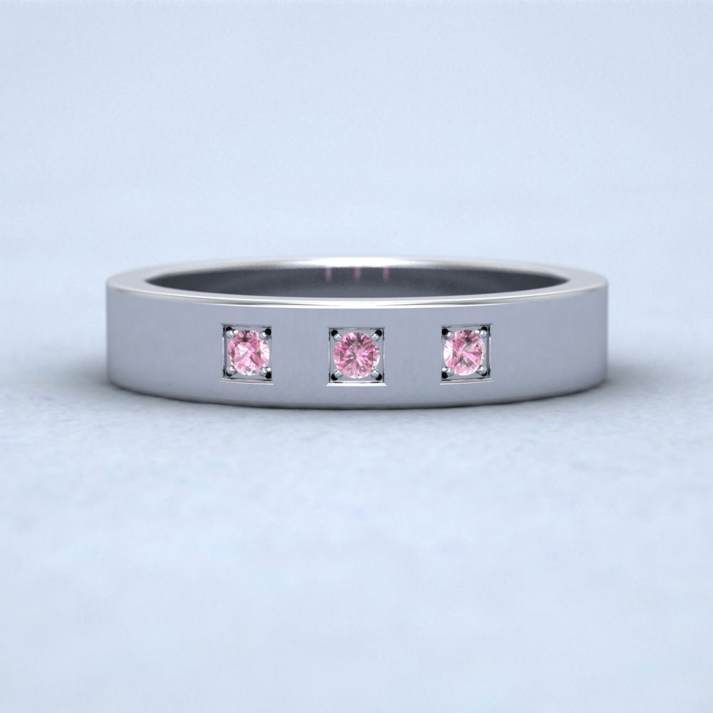 Three Pink Sapphires With Square Setting 18ct White Gold 4mm Wedding Ring