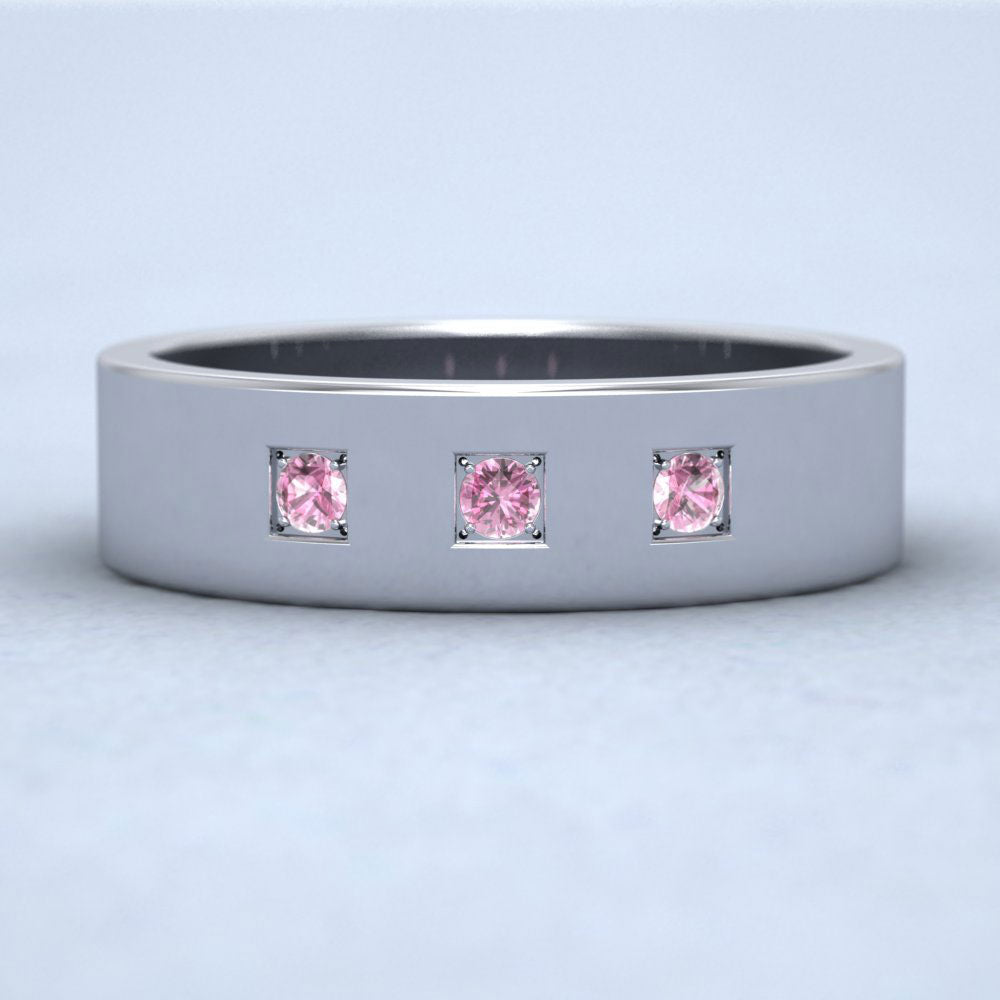 Three Pink Sapphires With Square Setting 9ct White Gold 6mm Wedding Ring