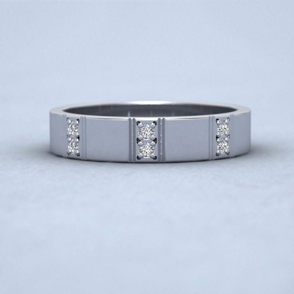 Three Row Diamond Set Flat Wedding Ring In 14ct White Gold. 4mm Wide