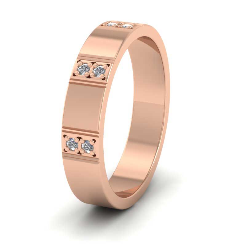 Three Row Diamond Set Flat Wedding Ring In 18ct Rose Gold. 4mm Wide