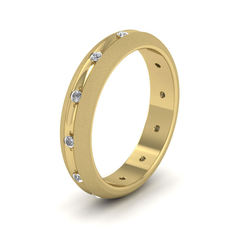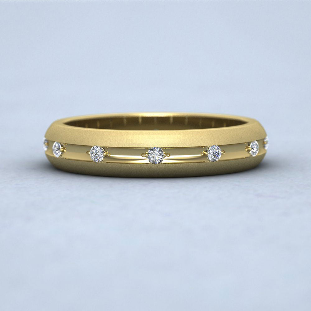 18ct Yellow Gold Wedding Ring With Concave Groove Set With Twelve Diamonds (0.12ct). 4mm Wide (Shown With A Matt Finish)